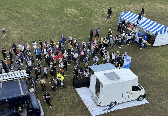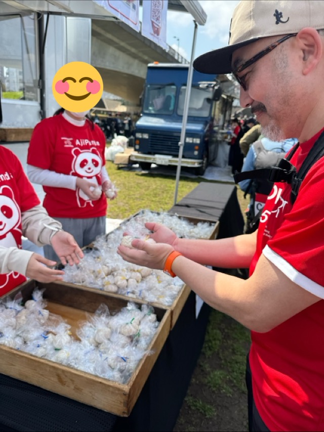 協賛の味の素のキャラクター「アジパンダ」に見送られ、いざ出発!!