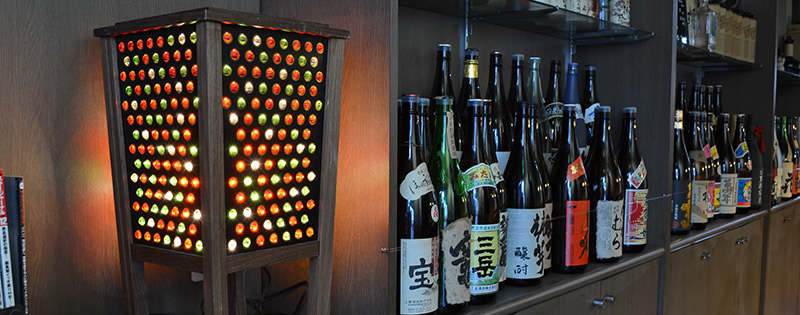 アルミ板に一つずつガラス球を埋め込み、木材で四方を囲むことによって、やわらかく暖かみのある光を実現しました。